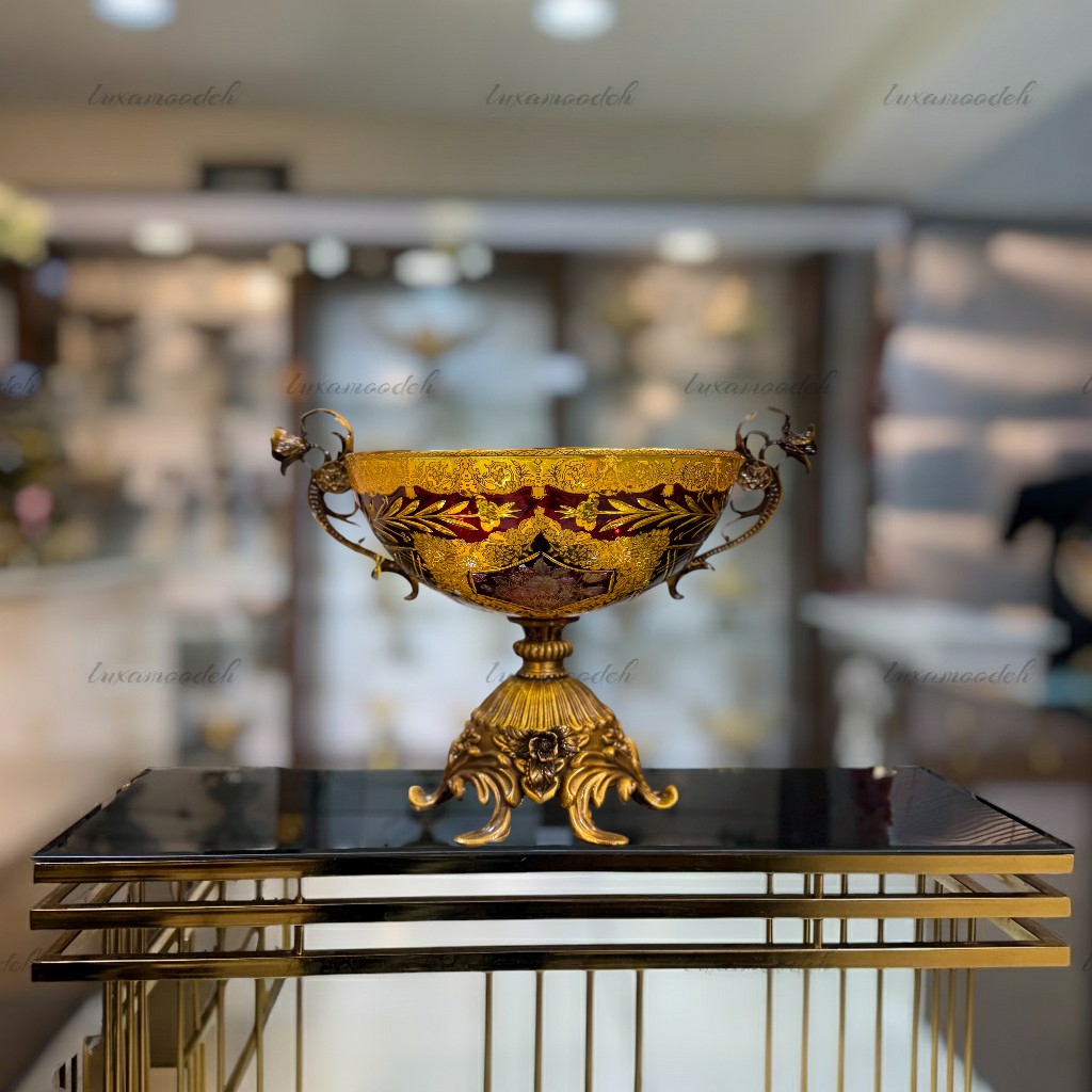 20,600,000 تومانست گلدان و شکلات خوری طلاکوب هارتز تراشدار مدل 6099 زرشکی