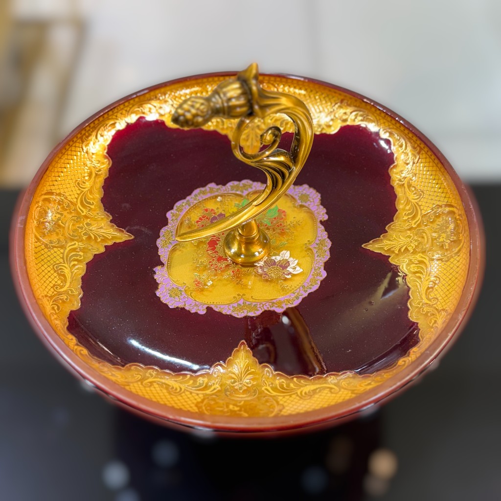 20,600,000 تومانست گلدان و آجیلخوری زرشکی طلاکوب گلدوی گلدار